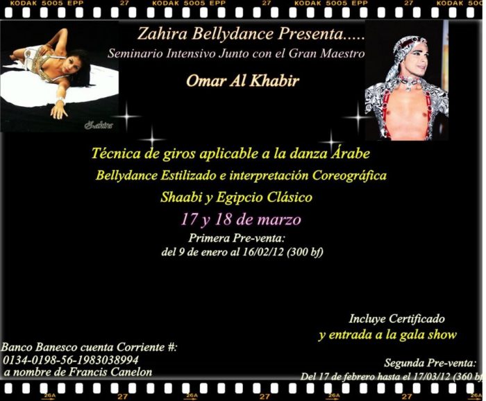 - Temas / Topics:• Técnica de giros aplicable a la Danza Árabe • Bellydance Estilizado e Interpretación Coreográfica • Shaabi • Egipcio Clásico